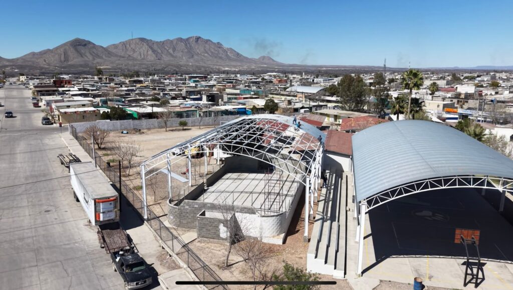 El presidente municipal de Camargo, Jorge Aldana, informó que avanzan los trabajos de construcción de la techumbre en la Secundaria Estatal 3063 “Lobos”, obra que actualmente se encuentra en la etapa de instalación de lámina, como parte del proceso final de la estructura. Esta importante obra se realiza mediante una inversión conjunta entre el Gobierno