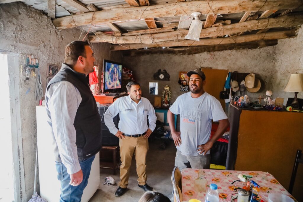 Como parte de las acciones para respaldar a las familias camarguenses, el presidente municipal Jorge Aldana visitó la comunidad de Ojo Caliente para hacer entrega de láminas y polines a Daniel Cerda, reconocido rotulista de la zona.