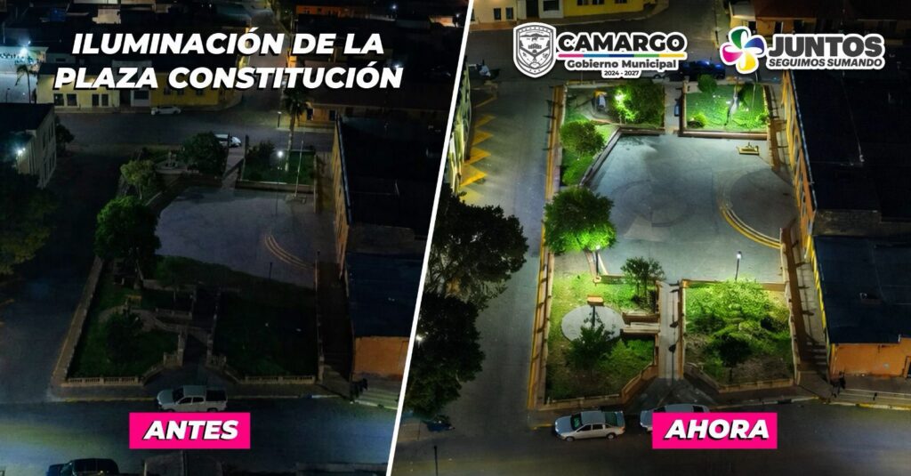 El Gobierno Municipal de Camargo, a través de la Dirección de Servicios Municipales, informó sobre la mejora integral en la iluminación de la Plaza Constitución, como parte de las acciones del programa “Manos en Acción”, el cual busca dignificar los espacios públicos del municipio.